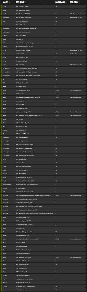 《极限竞速:地平线6》车型名单: