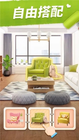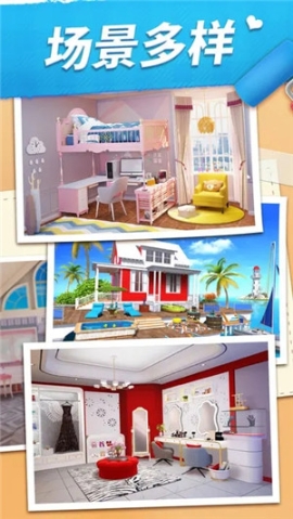 玩家可以在游戏中根据不同搭配建造房屋,让房屋从蓝图变成你美丽的小家。每一次布置房屋都需要安排任务,这样就充分利用了建造与消除之间的联系。让玩家们在建造的同时,主动去完成消除挑战任务,利用消除来获得金币和行动力,用以完成建造。