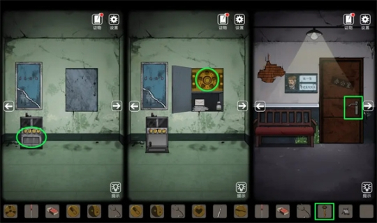 1、一开始,按照指引,玩家需要拿到【石头】和【老式手电筒】。使用【石头】垫脚翻过围墙,进入医院的洞口。接着,打开【老式手电筒】,移动光圈寻找电闸开关,并将其打开。