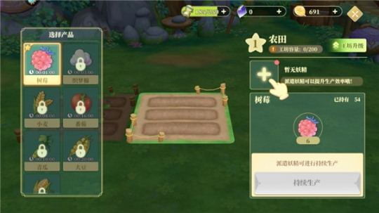 2、点击选择空闲的小妖精,就可以派遣他们前往农田。