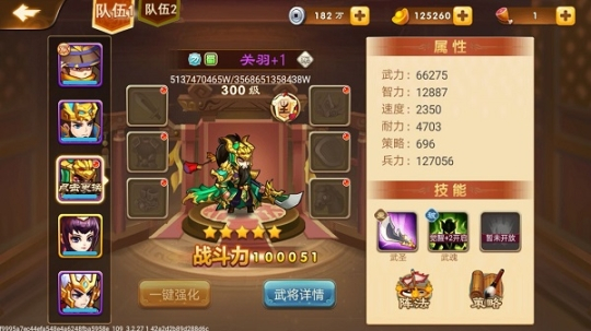 评测:获取难度中上,388元三星,元宝十连随机获得。优点:战力最高,武力值最高,伤害稳定。平民玩家能得到的最强武将。输出依赖面板数值,突破重点对象,关羽的豪华升级版。缺点:只能单体输出,二技能可以魔免,加攻,反击。但是需要耗费一回合不能输出。
