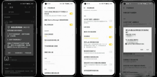 ①开发者选项-点击进入无线调试-三指上滑使用应用分屏