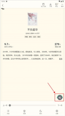 1、进入到小说阅读界面点击屏幕这时右下角会显示一个“听”的图标。