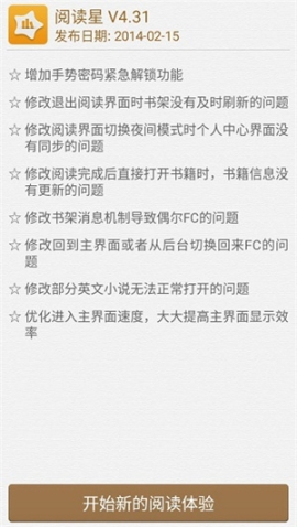 1、打开阅读星,会有欢迎阅读的界面,然后会看到版本的信息介绍;