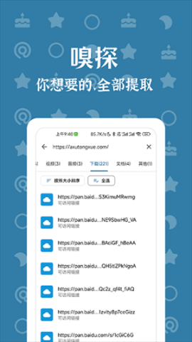 软件具备强大的网页嗅探功能,可以帮助你查找指定网站的资源。无论是图片、音乐、视频还是其他类型的文件,你都可以通过网页嗅探功能进行快速搜索和下载。