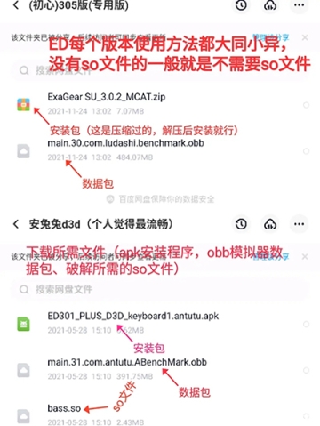 1、下载所需文件(apk安装程序,obb模拟器数据包、破解所需的so文件或者破解过检验apk补丁)(如下图,懂什么是安装包 数据包的略过)