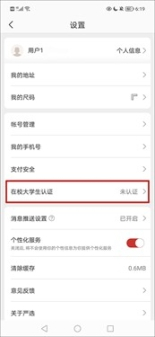 3、然后,在在校大学生认证界面填写好真实姓名、身份证号、学校名称、当地学籍、入学时间和预计毕业时间后点击左上角的下一步即可;