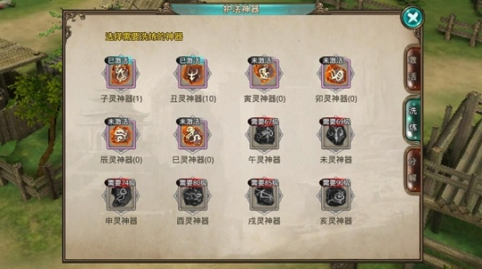 (2)点击已开启的生肖,且在背包内拥有相应神器的时候,护法神器界面提示“可激活”,点击后,选择希望激活的神器。(该属性在神器上附带)