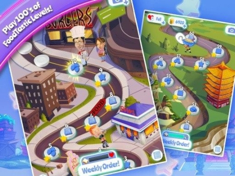 1、游戏采用了消除的玩法,客人在进店前会有提出要求,而你的消除界面会有很多的食物。
