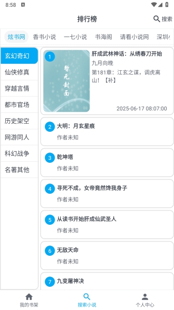 2.点击进入“搜索小说”页面,可以看到丰富的小说排行榜资源