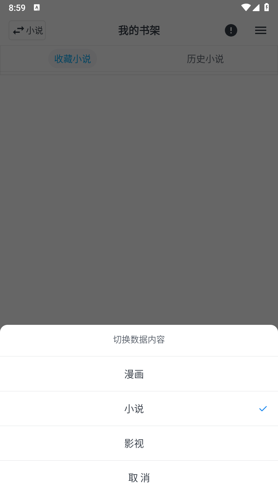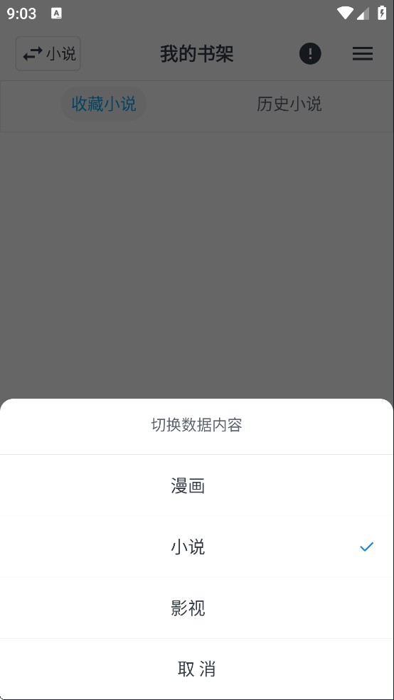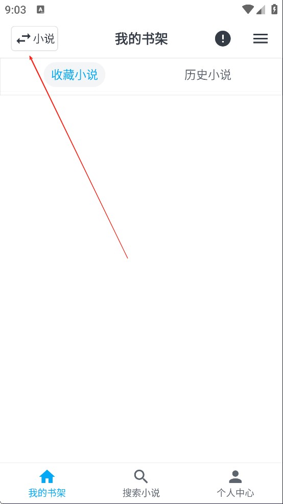 1.打开MyComic软件,点击首页左上角的切换按钮,切换到小说