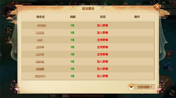 4、如果所在线路已满,可以通过宴会玩家界面切换分线
