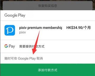 点击之后就会出现付款方式,如果我们没有注册过的话付款方式是空的,所以我们需要点击下方的添加。