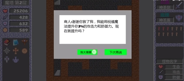 确定加完属性后,去2层找商人,这里商人会提升我们3%的攻击力和防御力。