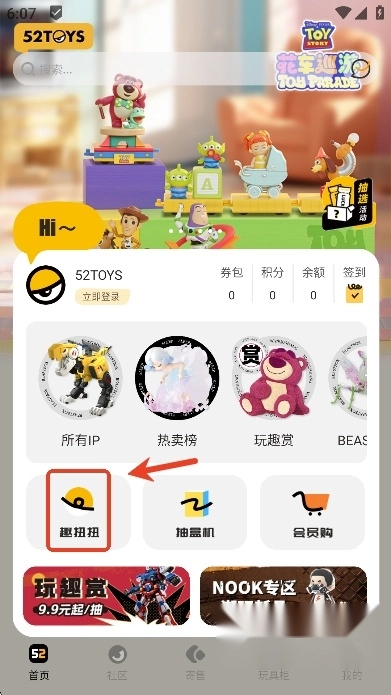 开启app后,用户能够点击“趣扭扭”。