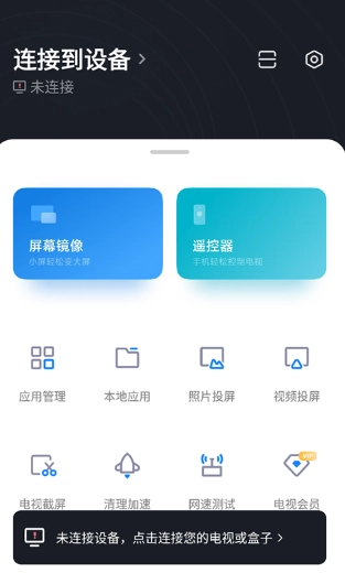 2、软件会自动搜附近电视设备,找到自家电视名称,点一下确认连接。