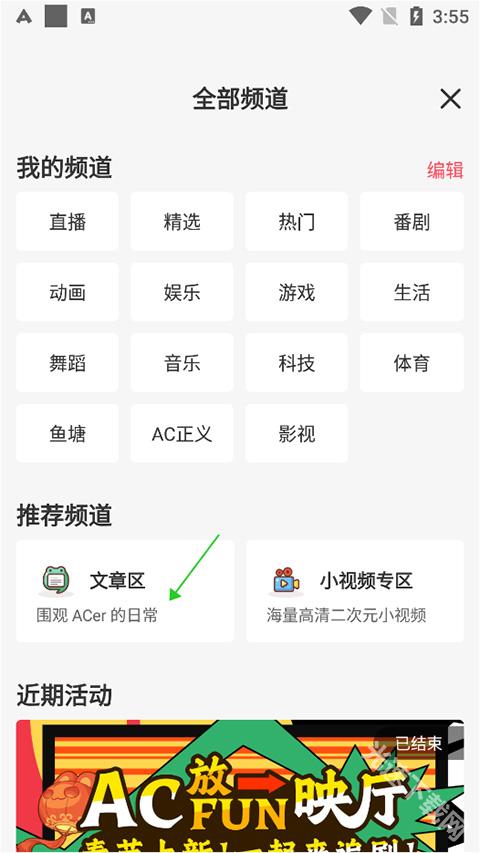 在新页面中点击【文章区】即可进入文章区