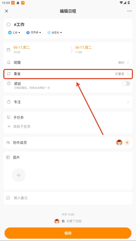 3、为任务设置提醒时间,确保你不会忘记重要的事情,可以选择定时提醒或周期性提醒。