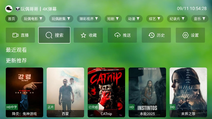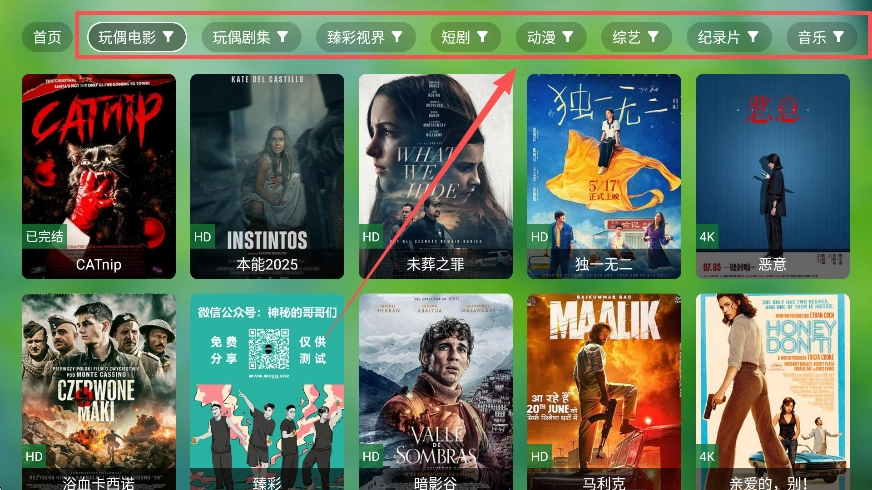 1、完成配置后可以看到各种影视