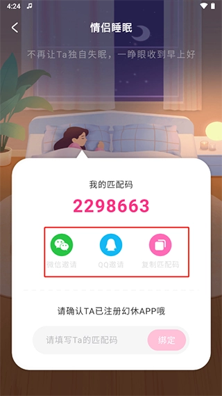 3、也可以输入TA的匹配码,点击绑定即可。