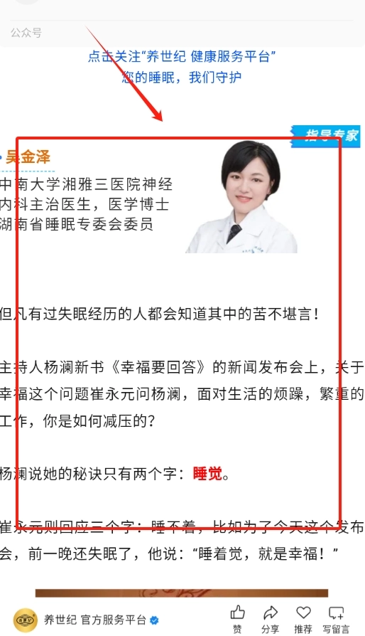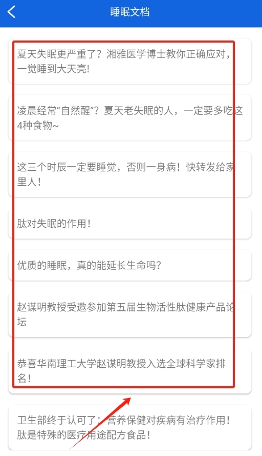 3、点击感兴趣的文章,就能看到详细内容,轻松学习睡眠相关的知识啦。