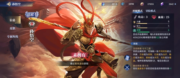 孙悟空作为首充角色,要是开局运气佳,能直接获得增益与窃取效果,助力在前期迅速提升发育速度。而且还有配套的金箍棒和火眼金睛,整体表现相当不错。