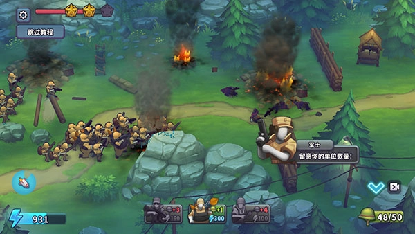 2、根据自己的资源招募士兵作战,合理匹配不同角色的士兵;