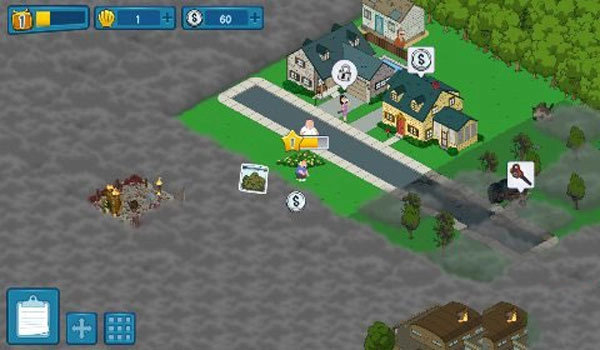 1. 《恶搞之家》游戏遵循动画原有的故事情节展开,玩法侧重于模拟养成类型,依旧是那无厘头的风格。游戏开场便是火鸡与彼得·格里芬展开大战。在经历一场惊天动地的激战后,当玩家点击救起彼得的瞬间,游戏才正式开启。