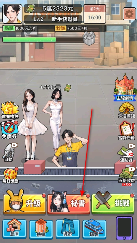 1、进入游戏点击秘书