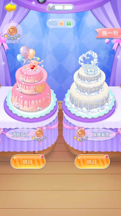 首先,挑选你想要挑战的蛋糕种类,然后点击下面的挑战按钮。接下来就开始制作吧,通过口味、装饰等方面来决定你的挑战是否能够成功。