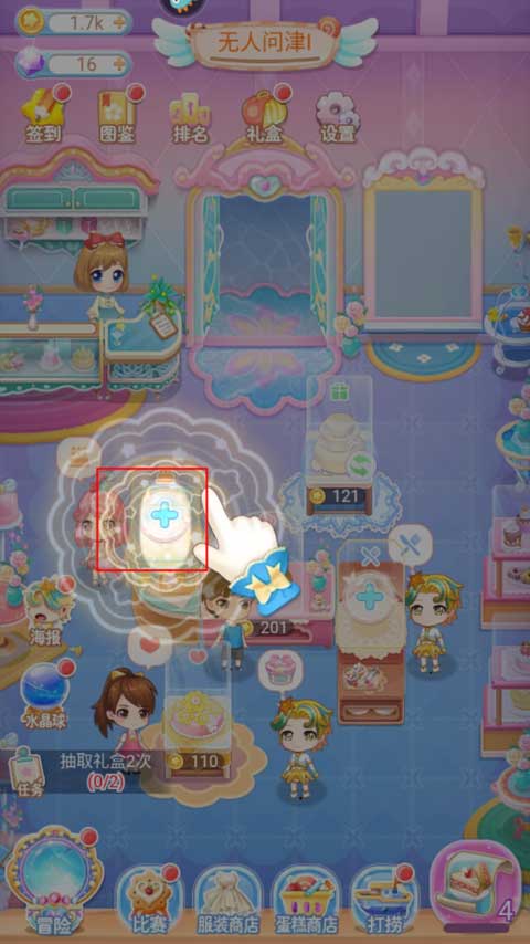 当顾客出现在已有的蛋糕橱窗口时,点击他们就能购买蛋糕并获得金币,有时候还能获得制作蛋糕的材料。