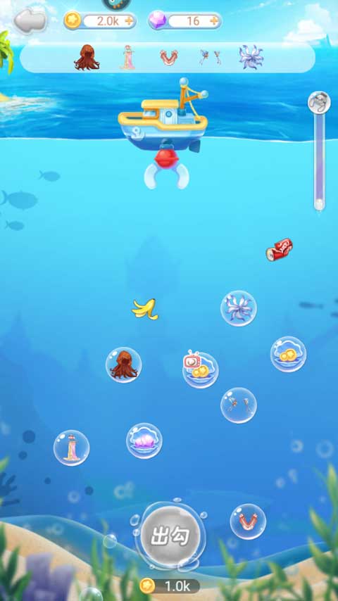 玩家可以点击下面的打捞选项,选定位置后点击确认,就能获取新服装了,偶尔还能获得金币等其他道具。