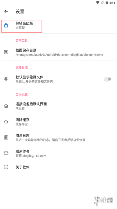 2、进入设置页面后,寻找并点击“解锁高级版”选项,这时会看到它处于未解锁的状态。