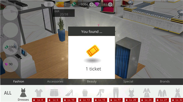 3、当你的精品增长,你会学习更多和解锁的项目更多的装备类别 - 鞋,高跟鞋,皮包,钱包,连裤,连身服,彩妆,化妆品,配饰等。