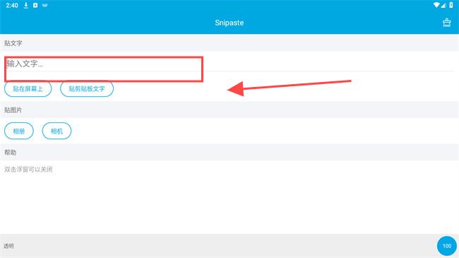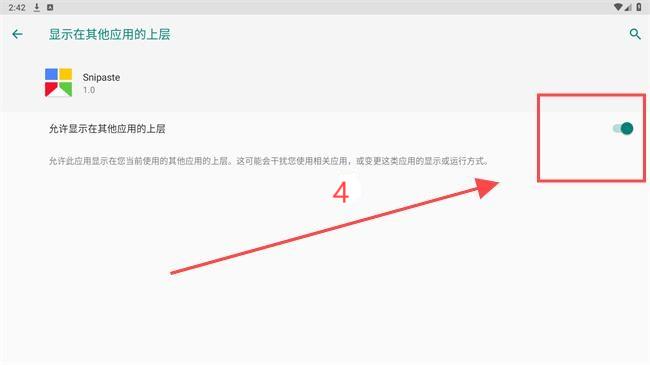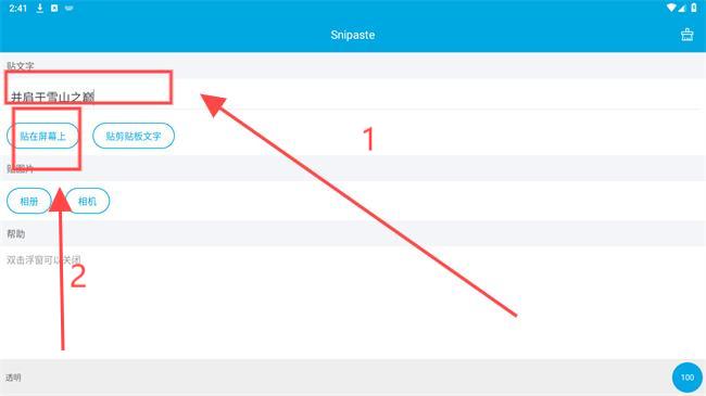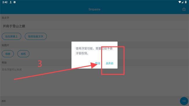 4、点击【贴在屏幕上】,打开权限设置,完成之后即可看到文字贴在屏幕上了
