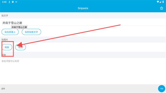 5、选择【相册】进入,则可以选择图片,请图片贴在屏幕上,还能随意移动图片位置哦