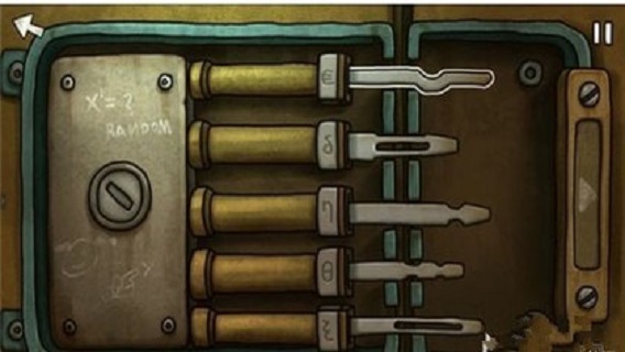 7、进入房间后,把铁钩、绳子和头发交给道具师,让他制作假胡子。然后将做好的假胡子交给演员,他会给你两张票。接着你会看到左下角有一个箱子,解开它的顺序是:先按右下按钮(此时左上亮起),再按左上按钮(此时下面亮起),接着按左下按钮(此时右上亮起),最后按右上按钮(此时下面亮起)。至于为什么这样操作,中间的提示已经给出了线索,如果这都看不懂的话,那你就放弃解密吧(嘤嘤婴)。打开箱子后,记得拿走里面的摇杆,这样这一部分就完成了。