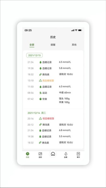 将血糖历史数据进行了记录管理,用户可在历史中心将查看历史血糖数据。