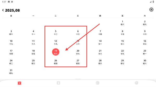1、在日历页,点击选中日期,可查看当天日程或设置事件,规划每日安排,点击查看日期。