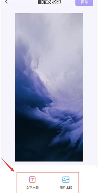 2、在手机上照片中找到需要去水印的照片导入操作界面,点击页面下方选择添加文字水印或图片水印;