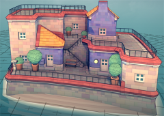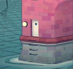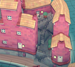 最后一个就是楼梯了,如果两个建筑之间距离一格,会形成一个小型楼梯(如右边的房子)如果距离两格,将会形成一个较大的楼梯(如图左侧所示)