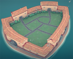 花园/田野内建造几座彼此靠近的建筑物,即可生成石墙,石墙样式取决于周围结构的形状和大小。