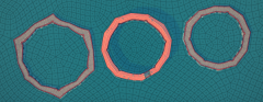 ①首先需找到特定的网格布局:没有非常尖角的网格布局,收尾相连的圆圈必须几乎光滑,任何角都不能超过一定角度。如果拐角建筑触发脚手架件,即不符合浮空网格布局