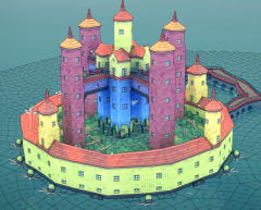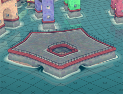 花园/田野内将一个高架部件连接到更高的建筑物上,可使一栋2个空间高度及以上的相同颜色的建筑物触发石墙。