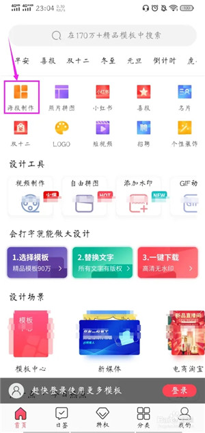 一键制作海报、壁纸、logo、邀请函、喜报、战报、贺报、日签(早晚安)、表情包、头像、GIF动图、传单、名片、易拉宝、菜单、优惠券、展架、封面、营销长图、电商banner、店铺首页、朋友圈配图、公众号封面、企业营销、广告推广、贺卡请柬、个人简历、婚礼邀请函、微商电商宣传、招生培训、开业活动、产品介绍、总结报告等,满足您不同场景的各类设计需求。