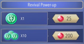 使用后可以在关卡内死亡的地点原地复活。少数情况下,复活出生地点会比死亡地点稍微提前一些。复活道具的图标和余额显示在屏幕上方的中央部位,处在红宝石与魔法沙漏之间,道具图标右侧数字表示复活道具余额。