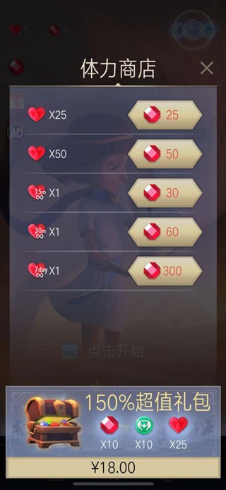 生命值是开启一次关卡游玩的重要因素。在主页面左上角的生命值处点击,可以进入生命值单项购买页面。