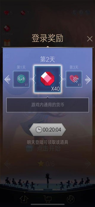 每天首次登录游戏时,会自动弹出“每日登录奖励”的弹窗,其中一些连续登录天数的奖品为红宝石,并且数量递增。