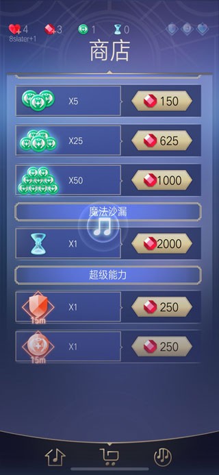 游戏通用货币,可用于商店购买、解锁关卡。显示在屏幕左上角、生命值右侧。红宝石图标右侧显示宝石余额,点击图标右下角的“+”号可进入红宝石单独购买页面。