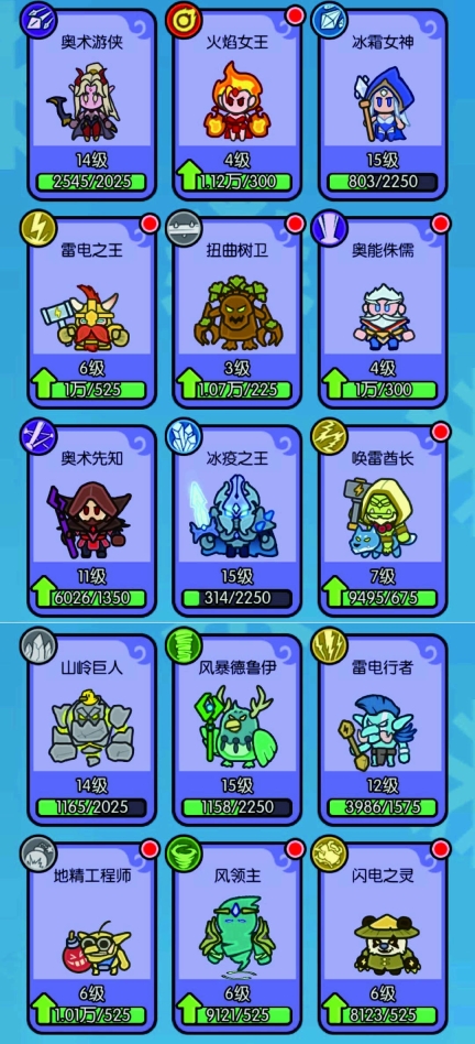 ”神刷“中英雄合计共15位,分别是:奥术游侠、火焰女王、冰霜女神、雷电之王、扭曲树卫、奥能侏儒、奥术先知、冰疫之王、唤雷酋长、山岭巨人、风暴德鲁伊、雷电行者、地精工程师、风领主、闪电之灵